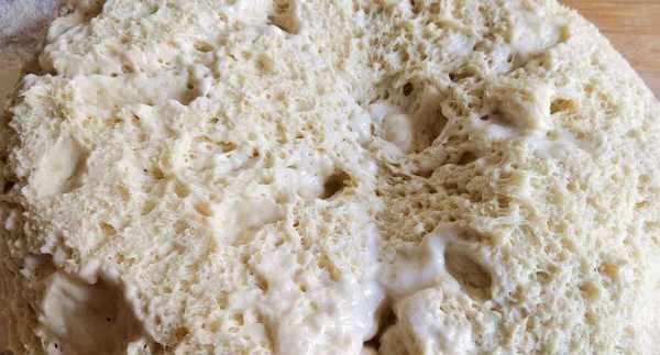 第四步:盆内加入300克面粉,加入2克酵母粉,加入适量的温水,边加水边搅拌,搅拌至剩余少量干面粉时,下手揉成光滑的面团,放到温暖的地方,发酵至2倍大。