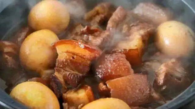 将焯水后的猪肉,放在电饭煲里,然后准备好的料头放入里面,然后放入生抽一勺,老抽半勺,蚝油半勺,然后再放入精盐5克,鸡精半勺,然后加入适量的开水没过猪肉。放在电饭煲里,按煮饭键煮40分钟。鸡蛋10个,放在凉水中将其大火煮开。然后煮十分钟捞出,去掉外壳,然后放在卤好的猪肉中,盖上盖子再次煮30分钟。然后保温就可以食用了。