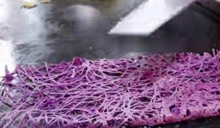这位大妈用6斤面粉做的小吃实现了500块的收益!1、首先把紫薯打成汁儿,然后再倒进面粉里面,一起和面,中途加一点水,和成面糊!