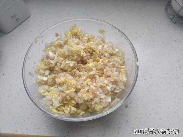 把白菜心切碎,洋葱切碎,装在一起,搅拌均匀,先放一边,让饺子馅更加入味。