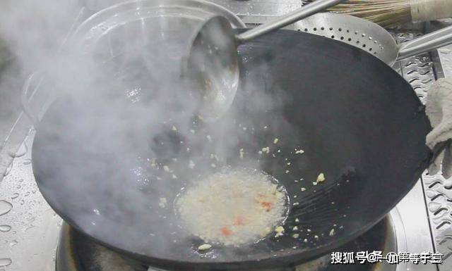 1.起锅烧油(没有炸制过的植物油),油热后,倒入准备好的大蒜,小米椒,炸出香味。