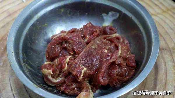1.首先我们准备牛肉500克,切成均匀薄片,切的时候要顶着牛肉的纹理,这样才能把筋切断,口感更加筋道 不会柴。把牛肉放入清水中,抓洗出血水以后捞出,攥干水分放入盆中准备腌制。