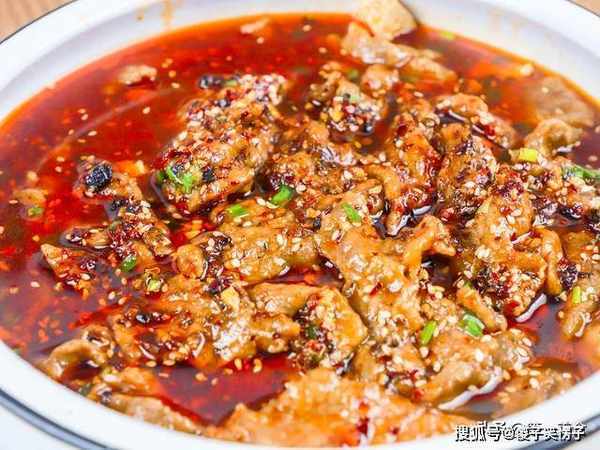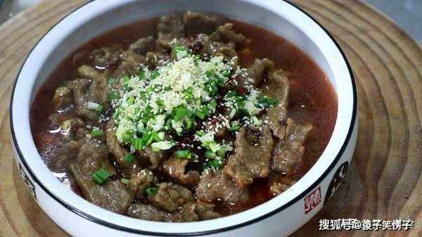 再撒上少许白芝麻,浇上烧至七成热的热油,香味瞬间就出来了,端上桌满屋子飘香,牛肉色泽金黄,汤汁红润发亮,汁鲜味香且辣非常过瘾。