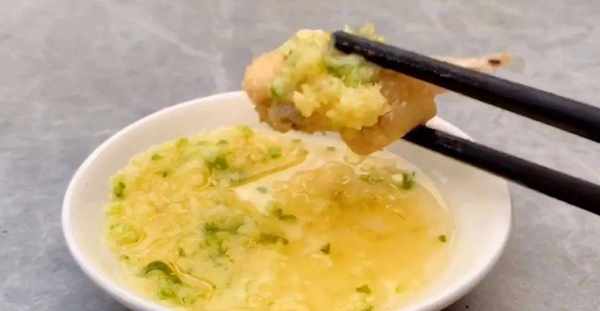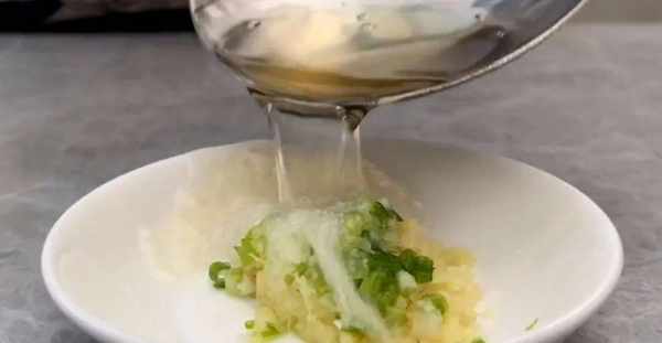10.接下来把锅烧热,要用热油激发出姜蓉和葱蓉的香味啊,放点油把它烧滚了,烧热烧的冒蓝烟就可以了,这样就可以关火了,它的香味真香。