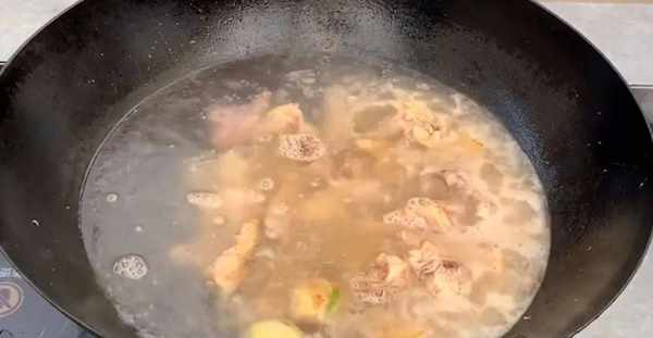 7.做这个鸡汤一定不能焯水啊,因为你一焯水,它的营养啊就会全部流失掉了。我们要保证它的营养在汤里面啊。只需要轻轻的把这个浮沫撇去就可以了。
