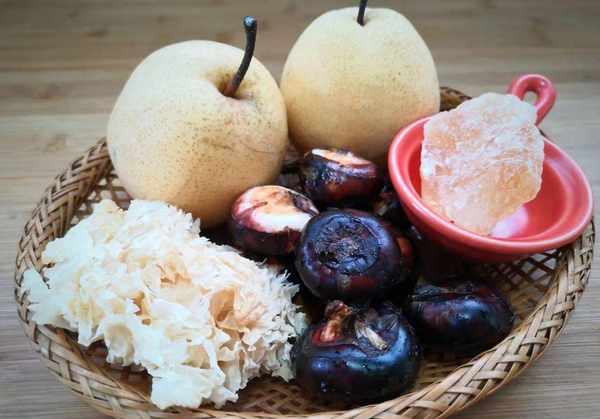 原料:雪梨、荸荠、银耳、冰糖。