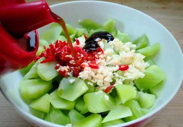 配料:冬瓜、肉末、小米椒、蒜瓣、葱花、蚝油、淀粉、料酒、生抽、鸡精。