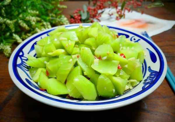 原料:生菜、小米椒、蒜瓣、盐、糖、醋、酱油、蚝油、香油。