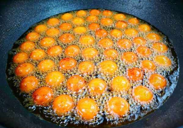 4、然后锅里倒入清水和糖,用大火煮沸,然后改小火不断搅拌,直到大泡泡变成密密麻麻的小泡泡,有点粘稠,拉成细丝即可去除将炸好的红薯丸子倒入锅中,快速翻炒,让红薯丸子均匀沾上糖浆,关火,让其迅速冷却,用锅铲不断翻动,红薯表面方块慢慢地在红薯球上结了一层白霜,一个一个分开就可以了。