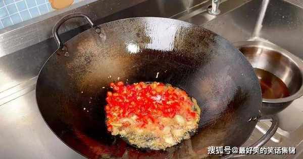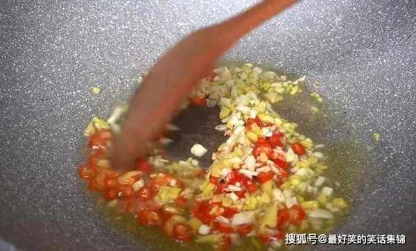 3、接着热锅放油,小米椒、蒜末炒香。