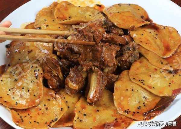 做这道排骨焖面,不会和面的可以在超市买点烩面片来代替,麻辣鲜香的排骨加上劲道好吃的面片,菜和主食都有了,中午焖上一锅,热乎乎的吃着还抗事。