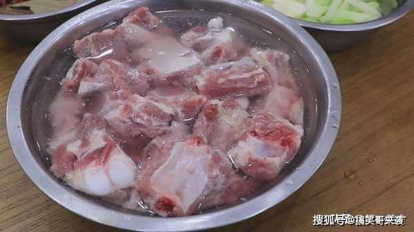 这是刚从市场买回来的一斤排骨,咱把排骨剁成小块,在清水中泡一会,把血末子泡出来。