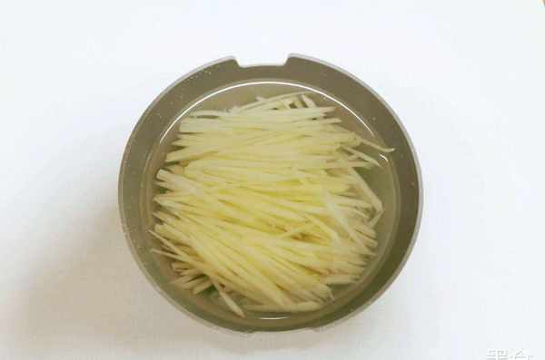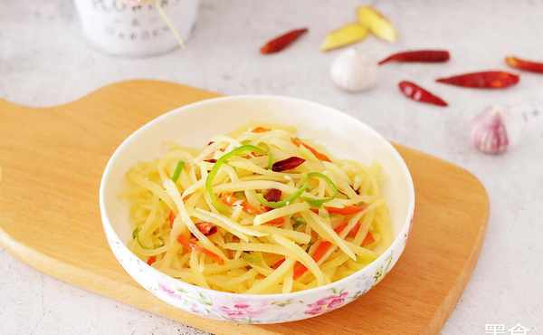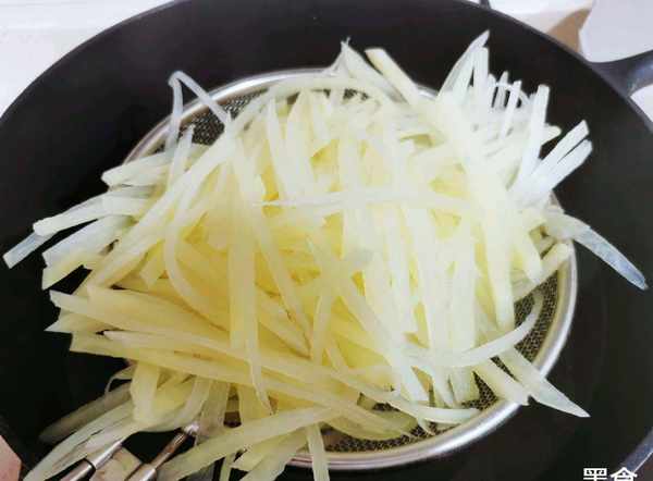 1、做土豆丝的时候,很多人也都知道需要将土豆丝的淀粉给清洗出去,但是单纯的清洗也是不能够的,我们再清洗干净的土豆丝里面加上食盐还有醋这两个调味料来浸泡土豆丝,会让做出来的土豆丝更加爽脆。