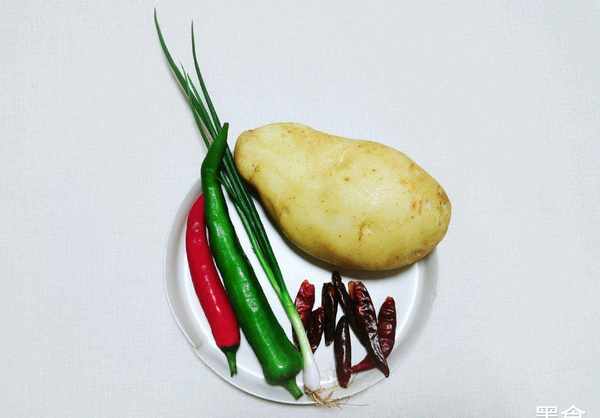 【食材清单】:土豆,青红辣椒,干辣椒,小葱,香醋,生抽,食用盐,油。