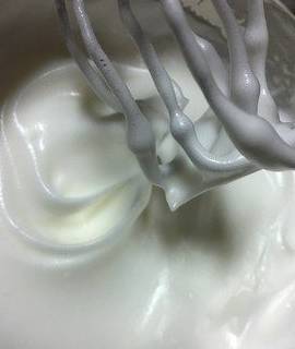 打到湿性差不多8分的状态,得到非常细腻的蛋白霜。如果想要光滑的表皮,这一步的蛋白霜不可以打太硬噢,但是又要足够细腻稳定,如果吃不准可以搜点视频看看。