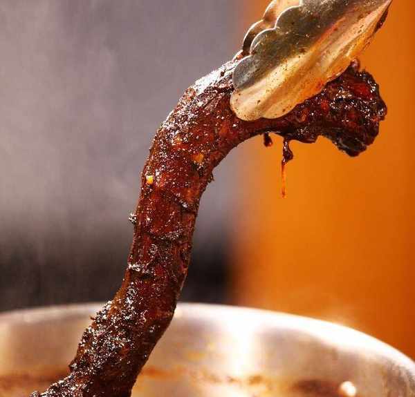 5、炒生料时,先把煮熟的汤烧开,再加入生料,因为如果生料和汤一起煮,鸭肉会软烂,影响口感;6、加工炒汤时,应适当加入调料。做法:把辣椒留在汤里的老卤水里,去掉料袋,第二次腌制时放入料袋,并相应加入味精、白糖和甜面酱,煮开。持续2个小时。然后给第二批配料加盐。商用的话,辣椒、刺灰每炖三锅换一次,五锅换一次香料包。