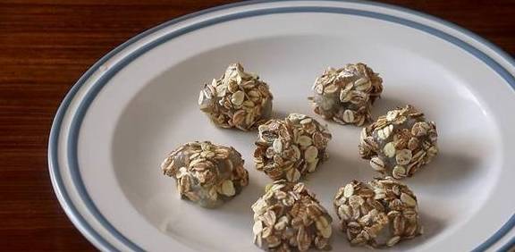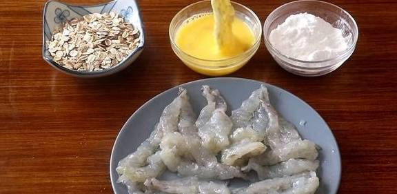虾肉裹上一层生粉,再滚上一层蛋液,最后蘸上燕麦。