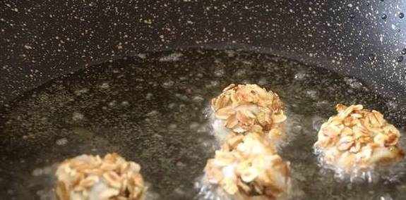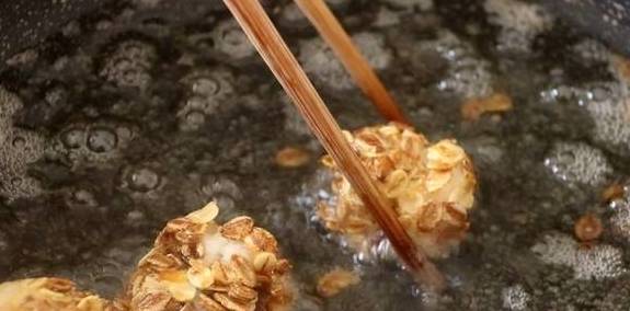 淋入水淀粉勾芡,把勾好的芡浇在虾球上,这道口味与颜值并存的燕麦虾球就完成了。