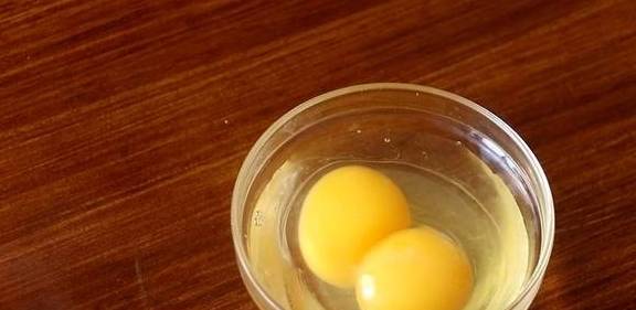 鸡蛋打入碗内,用筷子搅散。(今天小编运气很好,打了一个双黄蛋)