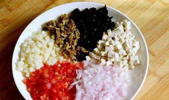1.需要的菜切成丁(可以随意加自己喜欢的菜)