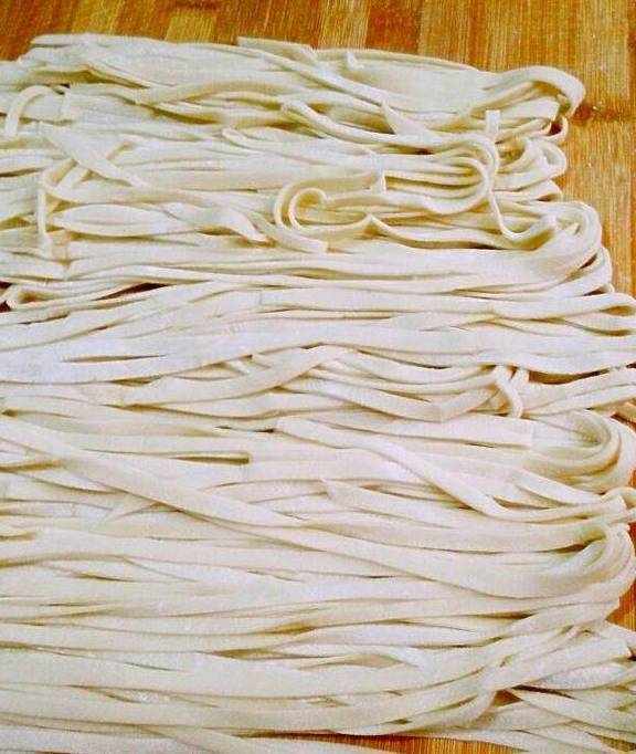 9.擀面的过程就不写了,我把面揉成光滑的面团后,先饧着,然后准备切菜炒菜,菜炒好后,开始烧水,这时面也饧好了,开始擀面