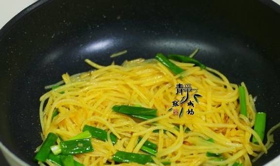 6、调入适量盐,撒上葱绿,炒匀关火即刻装盘。