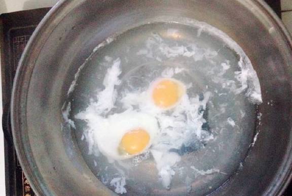 二、汤锅加入适量水,大火烧开后打入鸡蛋,熬煮2分钟左右;