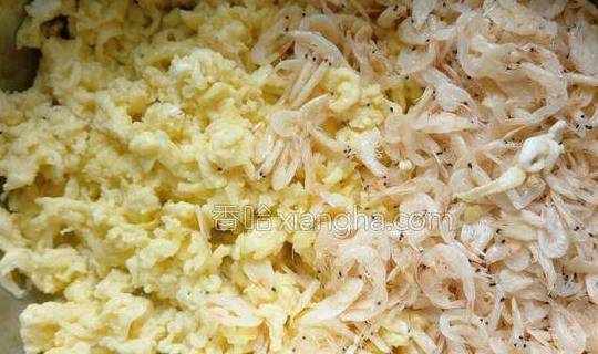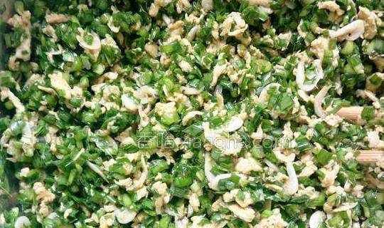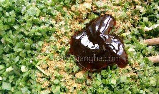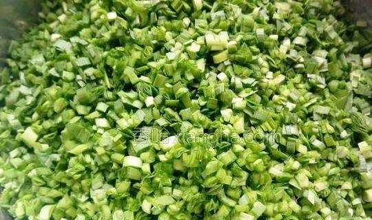 5.锅中热油,倒稍微多些的油,把活馅的油直接都带出来!