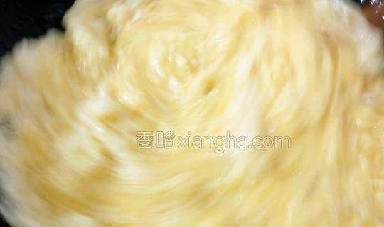 6.把鸡蛋液倒入锅中用筷子不停的搅拌!