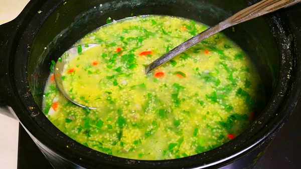 1.先将小米用清水多淘洗几遍,淘洗小米时不要用力搓,以免造成小米表面的营养成分的流失。