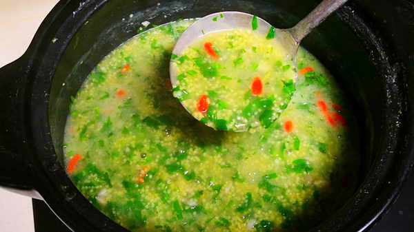 小米淘洗干净后不要直接下锅煮,为了煮出的小米粥米油更多、更粘稠好喝,还要将小米继续浸泡半个小时左右。