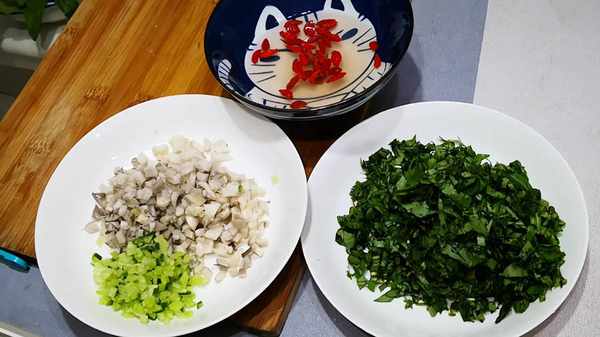 再准备适量的配菜:平菇洗净切丁备用;青萝卜也切成小丁备用。
