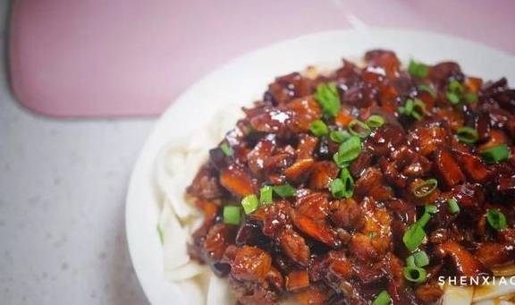 7.锅里煮一锅水,水开后,把面条放入锅里煮熟,捞出后拌上香菇肉酱,就能开吃啦。剩下的香菇肉酱可以拌饭,也可以放冰箱冷藏第二天再吃。剩下的面条按份放入保鲜袋,放冰箱冷冻保存,下次直接拿出来煮面就行,不用解冻。