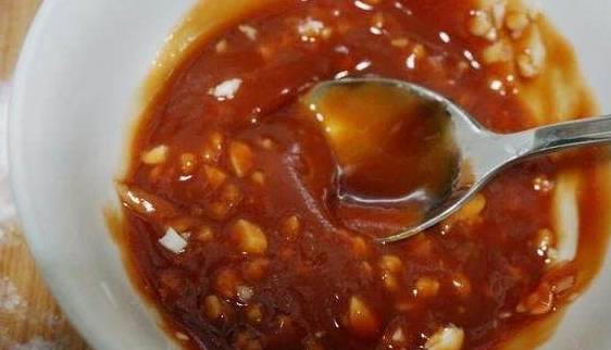 番茄酱与大蒜粒搅拌好