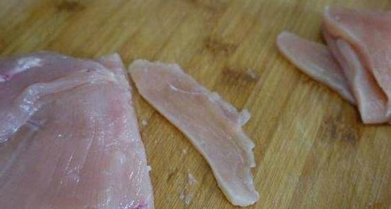 首先我们把鸡肉切片,里脊肉也是可以的