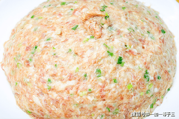 、放在肉末里面,继续顺着一个方向搅拌摔打上劲,饺子馅充分上浆入味以后放置备用。