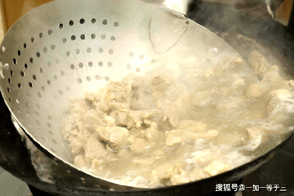 水烧开以后,打去锅中的浮沫,把羊肉捞出来,沥水备用。