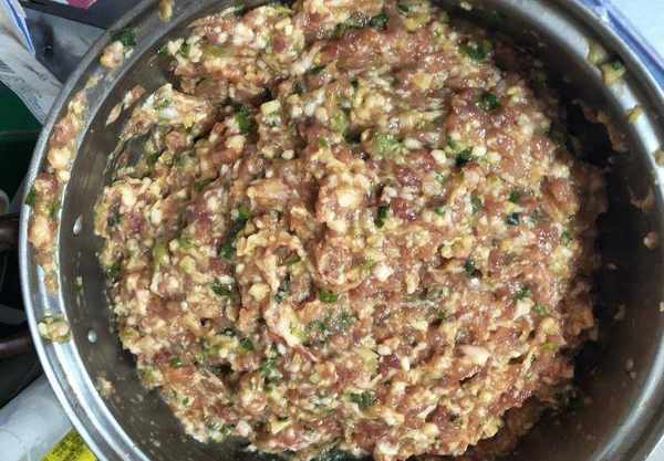 1、五花肉去皮洗净绞成肉馅,荸荠去皮洗净切末,葱姜切末。肉馅加入葱姜末、食盐、生抽、老抽、蚝油、料酒,用筷子搅拌均匀。