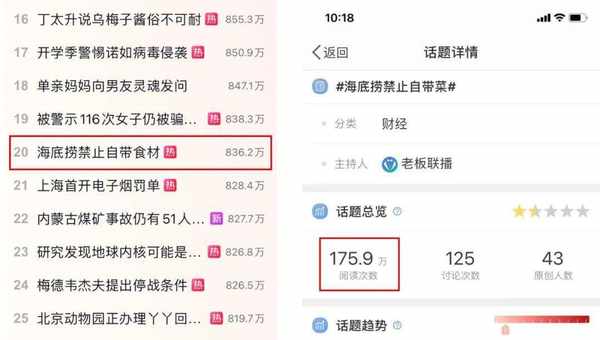 相关视频大部分很类似:海底捞北京某门店客服称“出于对食材管理和安全用餐的考虑,2月21日起通知严格执行谢绝自带食材”。在此之前,部分门店允许少量自带食材,需要签署免责协议,并进行留样。现在会让顾客把自带菜带回家。海底捞全国客服也表示,不提倡自带食材。