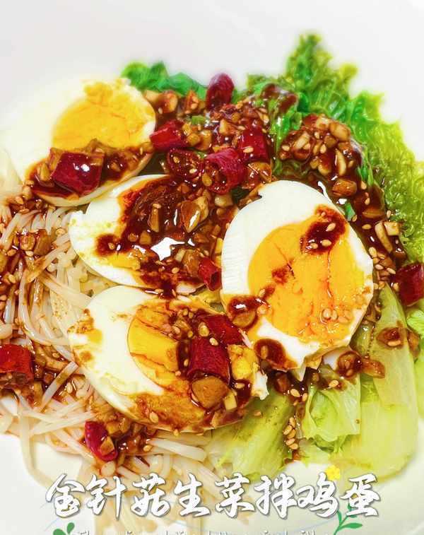 法宝|金针菇鸡蛋混合沙拉,水煮,水煮,混合,非常简单,好吃又齐全,喜欢~