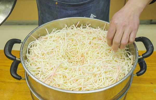 3.有利时机已到。打开盖子,从锅中取出。趁热快速摇一摇,让表面的淀粉见风,吃起来软韧有嚼劲。