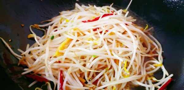 提示2。醋炒绿豆芽整个过程一定要高温。切记不要开小火。不用担心大火炒菜,炒绿豆芽的时候会漏出少量的水。不加水又脆又嫩,这一招大家一定要记住。