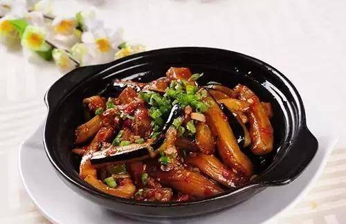 材料:长茄子2个,肉末100克,小葱3个,青蒜1个,姜2片,干红辣椒3个,油适量,甜酱油少许,盐少许,甜酱油少许、少许白醋和1碗水