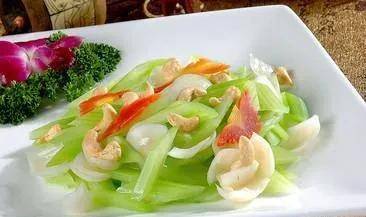 芹菜200克,百合30克,腰果30克,红辣椒、盐、植物油、白糖。