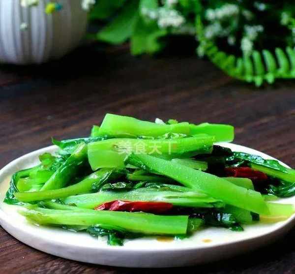 3、炒锅烧热后倒入适量花生油。当油温达到60%时,加入葱花、蒜末和辣椒片翻炒。香气释放后,加入焯过的生菜尖,翻炒30秒。4、出锅前加入盐、生抽和十三香调味。搅拌均匀后关火,装盘。一道香脆爽口的炒生菜角就做好了。