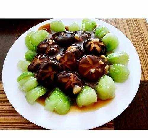 3、锅中油烧热,放入葱姜蒜爆香,加入香菇片翻炒2分钟,炸好后将酱汁倒入碗中,小火煮至浓稠,倒在上海菜上。