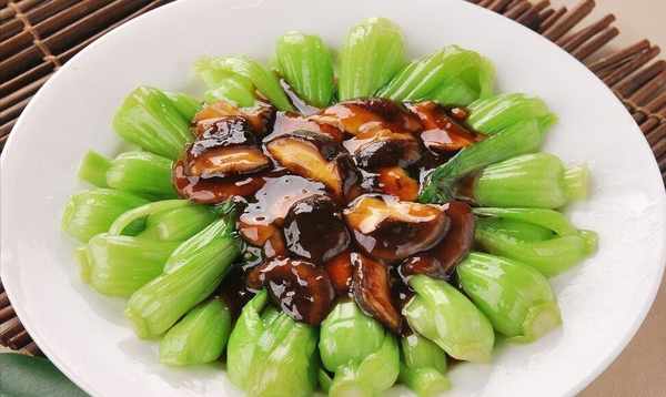 2.取出油菜,盛入盘中,油烧热后姜末炒香,加入香菇炒至断,加生抽1勺,香菇酱2勺,1勺糖,等待,直到蘑菇完全变软。软化后,加少许水,淀粉,撒上煮熟的芝麻即可起锅,浇在菜籽上即可。
