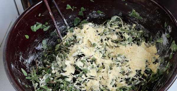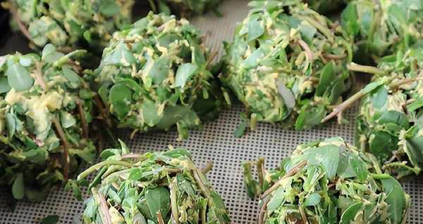 1、将马齿苋洗净,放入碗中加入少许碱面中和马齿苋的酸味,加入三个鸡蛋拌匀。
