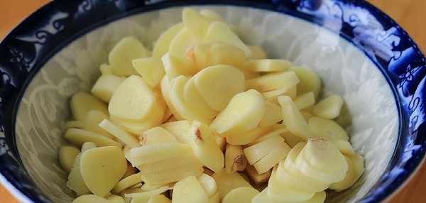 1.这道菜的主角是大蒜,准备一片鱼片,去皮,切成均匀的片状放入碗中,加少许盐调味,准备少许葱姜水,倒入将其放入碗中,搅拌均匀。