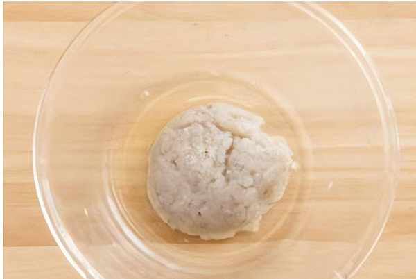 2、打发好的虾茸加入料酒、蛋清和盐,用手朝一个方向均匀拍打,让虾茸更结实。